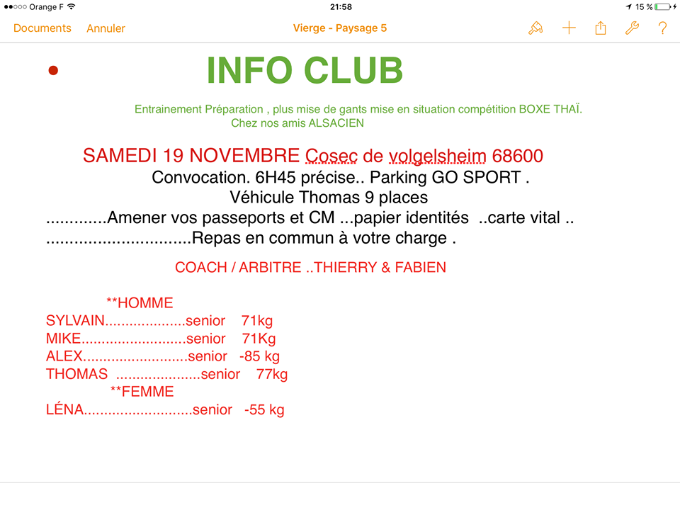 n oubliez pas samedi 19 novembre les combattants du GBTB se deplace a Volgelsheim pour effectuer ses premiers combat de l année en Muay Thai bon courage aux combattants